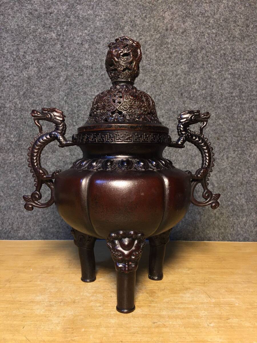 - 香炉 清代 旧蔵 チベット古寺 純銅双龍アロマストーブ 銅製 唐物 收蔵品 時代物 古美術 古置物 希少珍品 供養品 文房具6.11
