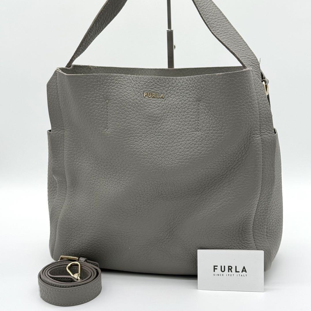 - 【美品】FURLA フルラ Capriccio カプリッチョ ハンドバッグ 2way A4収納可 肩がけ セミショルダーバッグ レディース グレー AA740411