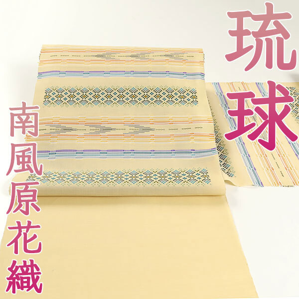 - 和遊館 即決ona4393 単衣 夏 本場琉球 手織工房おおしろ 南風原花織 手織 九寸 名古屋帯 黄色系 お仕立て付き