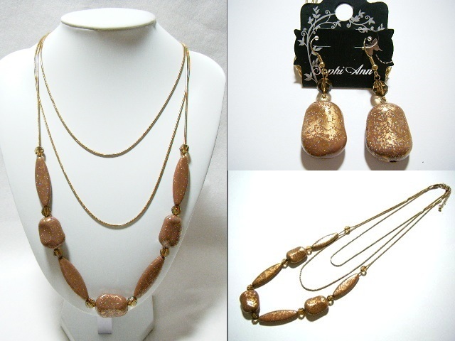 - ★未使用品 ネックレス ピアス セット 茶系 ラメ ゴールドカラー ニッケルフリー【BD8】