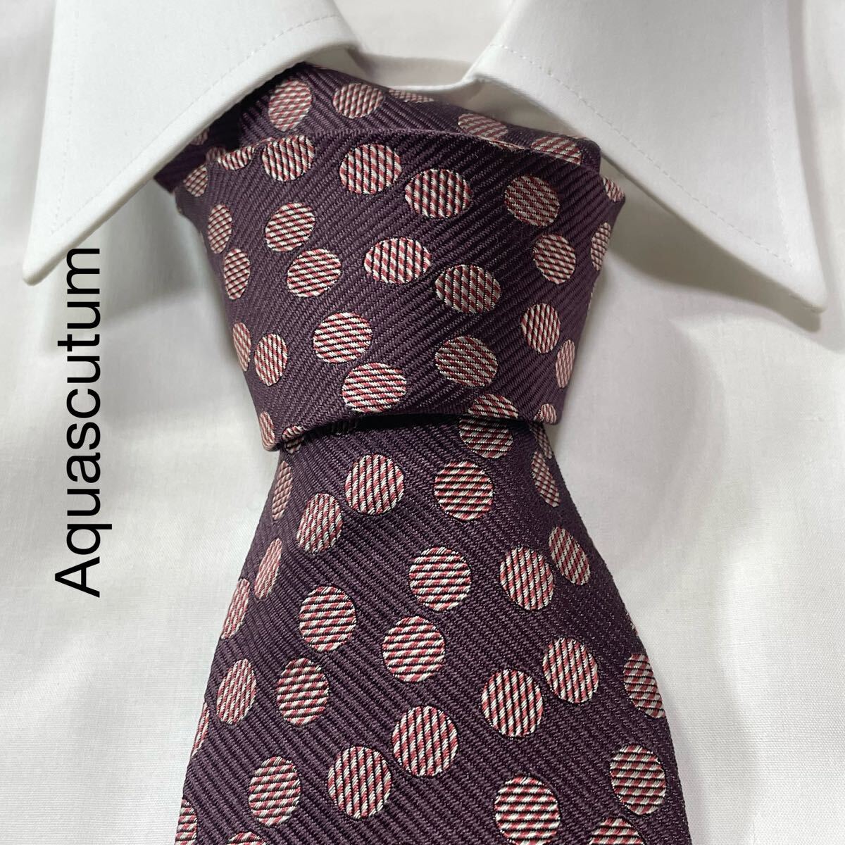 - Aquascutum アクアスキュータム 水玉 ストライプ ジャガード シルク ネクタイ 日本製 パープル レッド シルバー TG2003