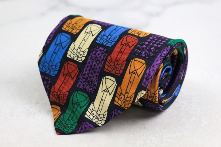 - モスキーノ ブランド ネクタイ 服 シャツ 総柄 パネル柄 マルチカラー シルク PO メンズ ネイビー MOSCHINO