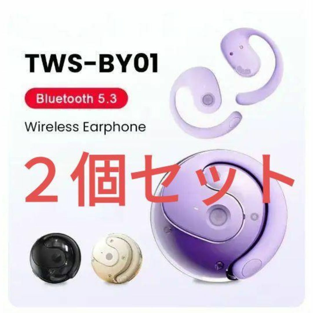> 2個セット 黒 パープル ヘッドセット イヤホン ヘッドフォン 開放式 耳掛け式 フック 落下防止 スポーツ f15