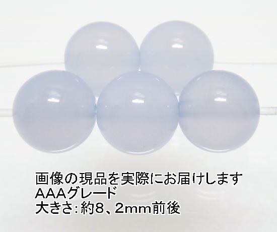 > (閉店価格)NO.12 ブルーカルセドニーAAA 8mm(5粒入り)<憂鬱の解消>高品質天然ブルーカラー 天然石現品