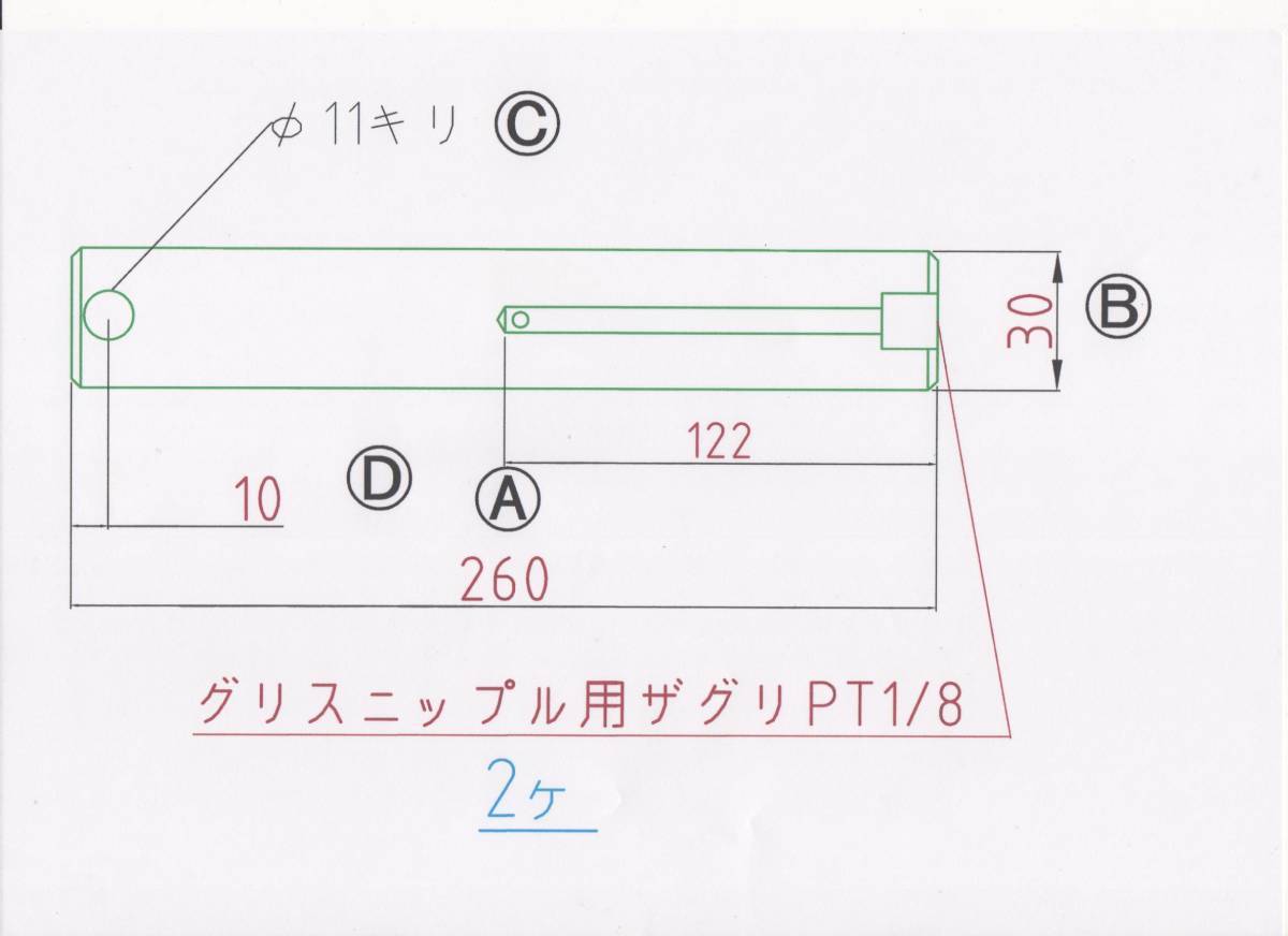 - NO.1643 Φ30用 全長260mm グリス穴付きバケットピン 2本1セット