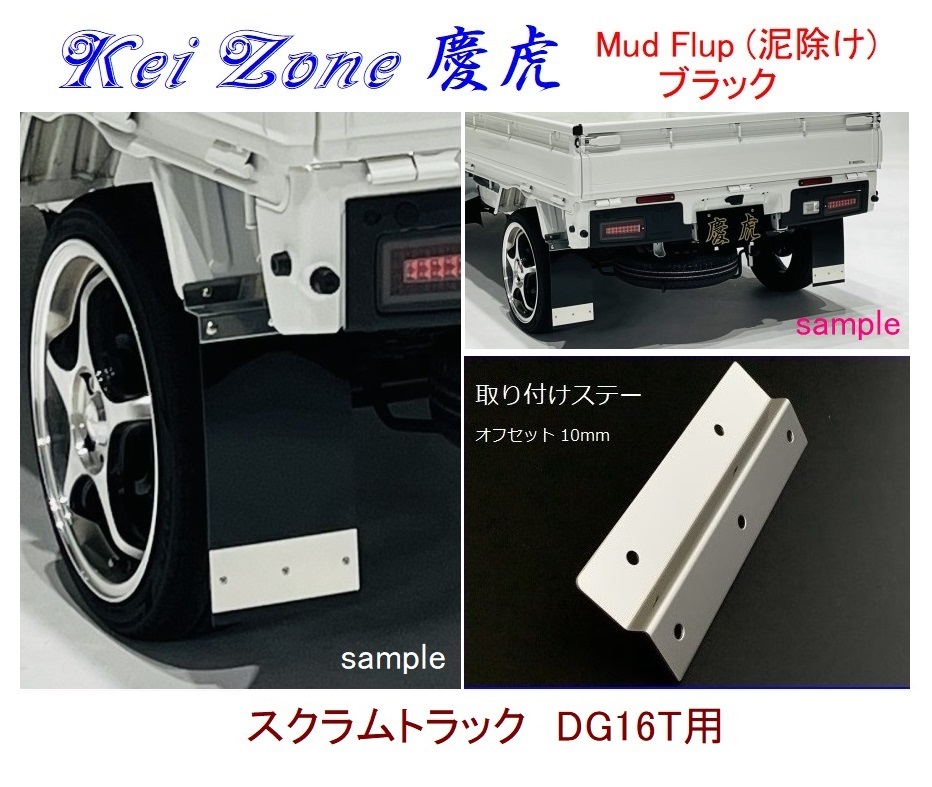 - ◇Kei-Zone 慶虎 Mud Flap 泥除け【ブラック】鏡面ステー付 軽トラ用 スクラムトラック DG16T
