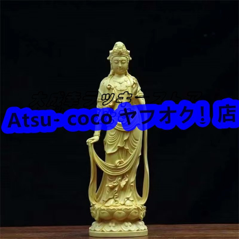 - 聖観音菩薩立像★新作 木彫仏像 彫刻 仏教工芸 柘植材 ご利益 仏師で仕上げ