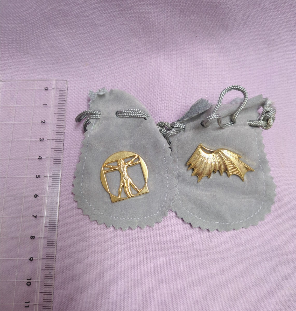 - ビンテージ フランス製 ピンバッジ レオナルド・ダ・ヴィンチ 人体図 人工翼 ピンズ 金 ゴールド レトロ
