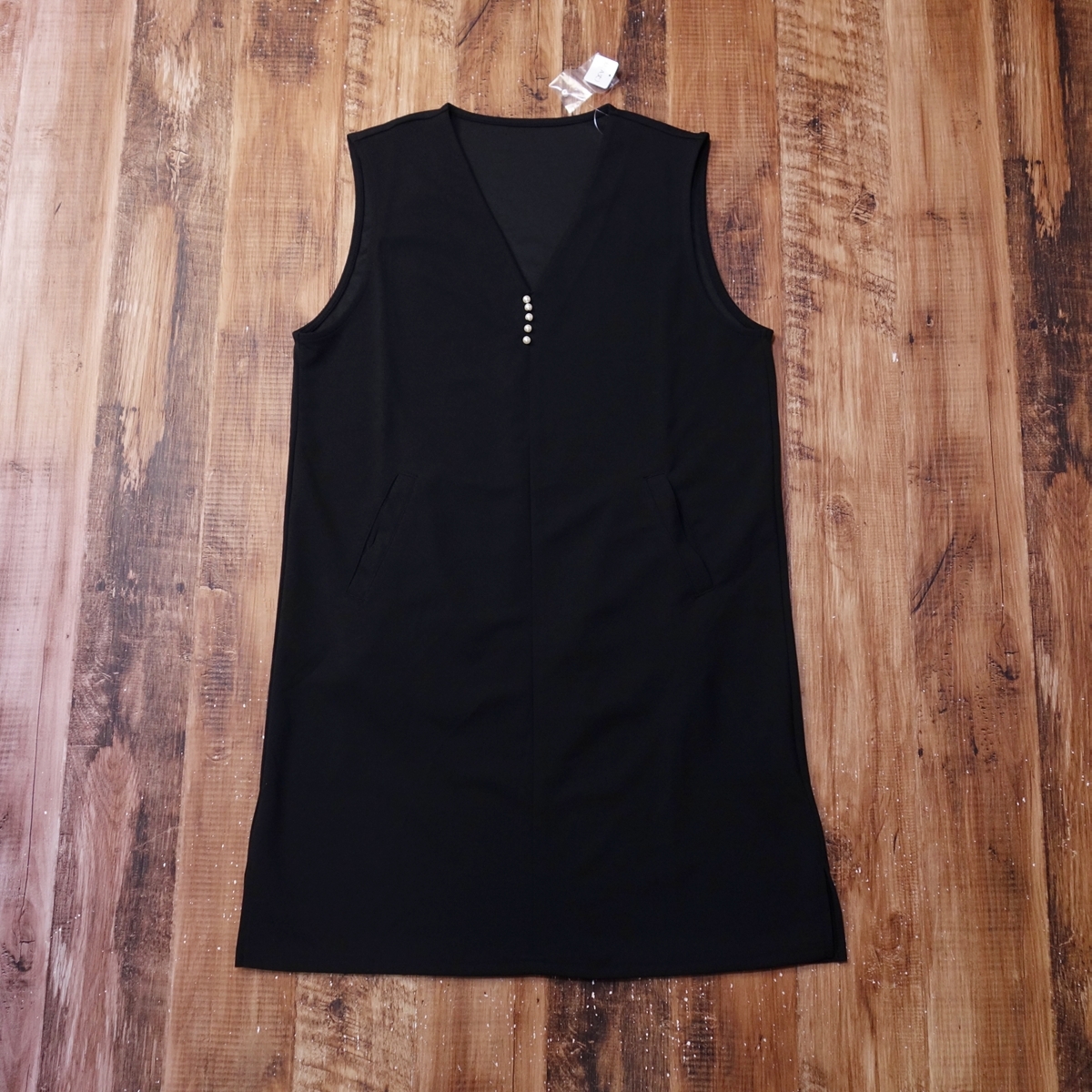 - 未使用 Iラインジャンパースカート レディース パールボタン ノースリーブ ストレッチ Mサイズ ブラック PM2