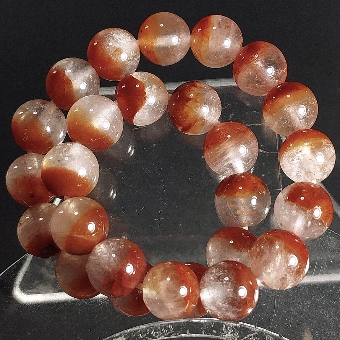 - ラビットヘアルチルインクォーツ レッドアンフィボール ブレスレット 紅白水晶 7㎜ 16㎝