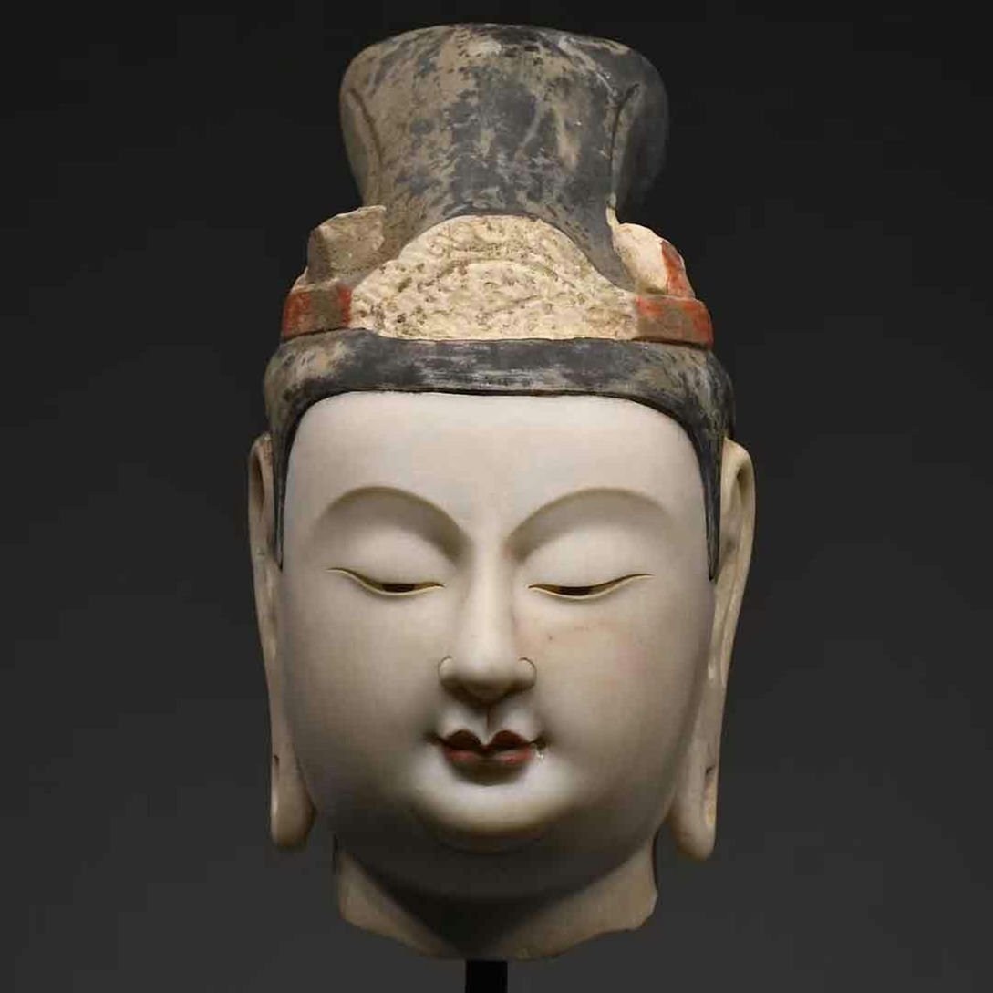 - ▼渡鶴羽▼W0538北斉時代 漢白玉仏首 漢白玉石細工彫刻★仏教古美術★仏像★細密細工★廃寺旧蔵★廃寺買出品
