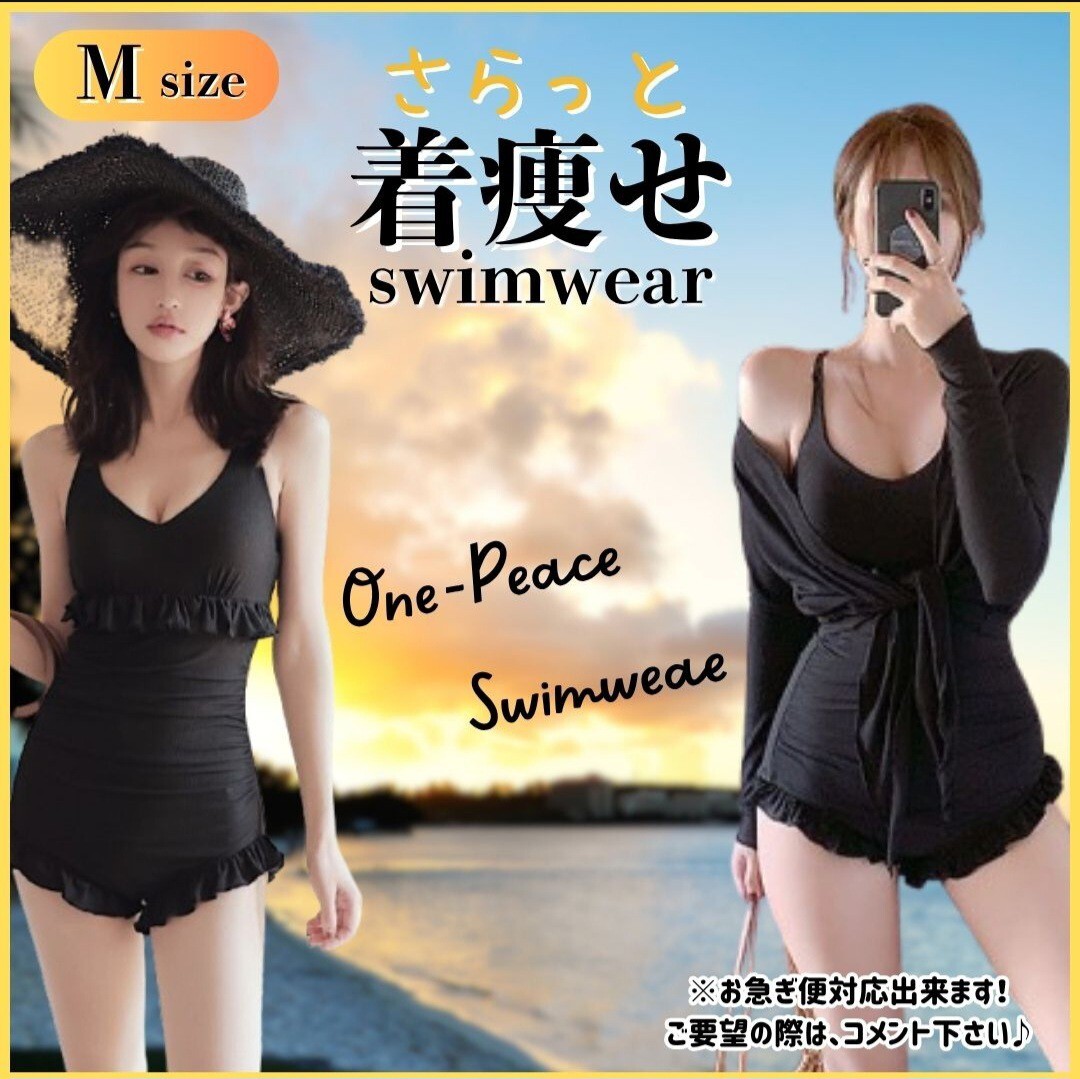 - M 羽織り セット ワンピース ビキニ フリル カーディガン 水着 レース ブラック ビーチ モノキニ セクシー エロカワ プール