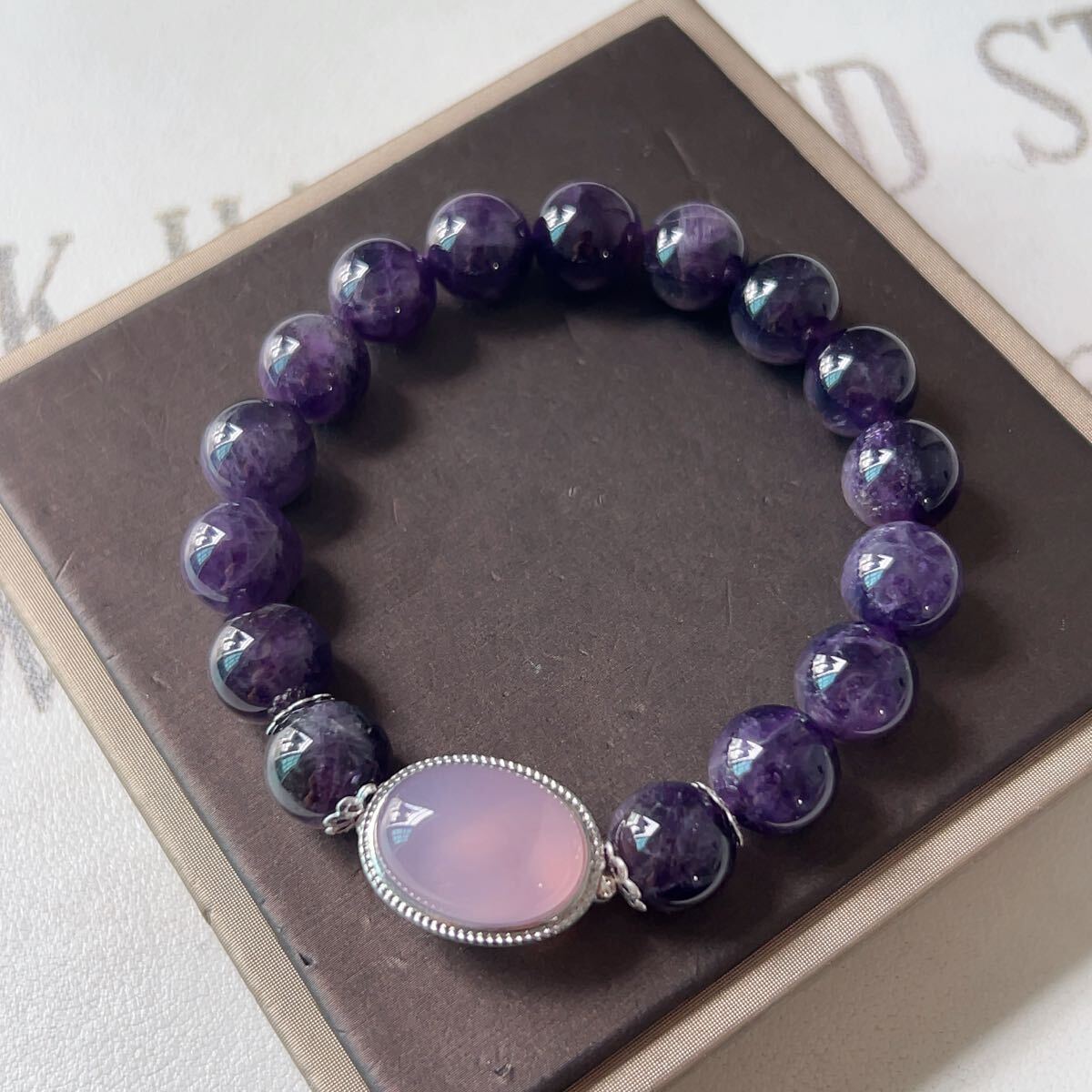 - ◇ウルグアイ産◇紫水晶+ピンクパープル瑪瑙◇アメジスト◇ブレスレット◇パワーストーン◇天然石◇巾着袋付き◇プレゼントにも 032B6153