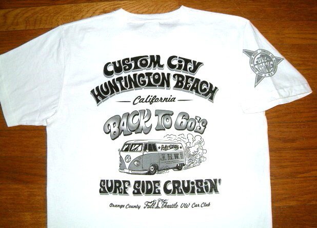 背中に大きくメインモチーフの【カスタムカー(ワーゲンバス)】が、