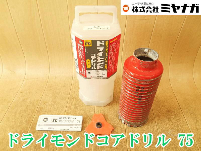- 〇 ミヤナガ ドライモンド コアドリル カッター L PCD75C 回転ドリル用 刃先径75mm 鉄筋コンクリート ヒューム管 Lシャンク 穴あけ 刃