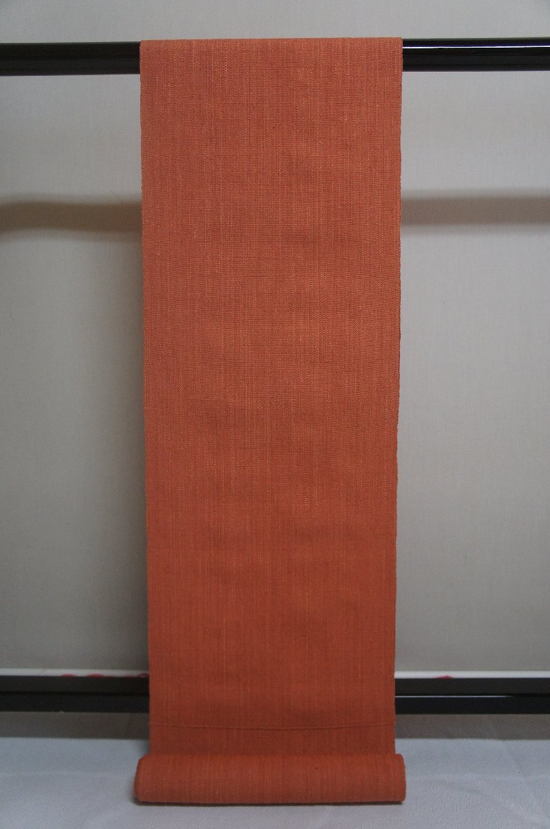 - 正絹手織り経節紬?鴇茶色無地八寸名古屋帯反物[N16246]