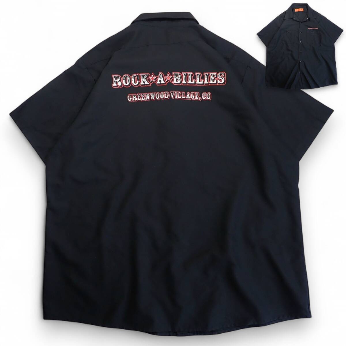 > 6740/美品 ConerStone 半袖ワークシャツ XL ROCK★A★BILLIES ロカビリー GREENWOOD VILLAGE,CO 両面プリント●洗濯プレス済●古着