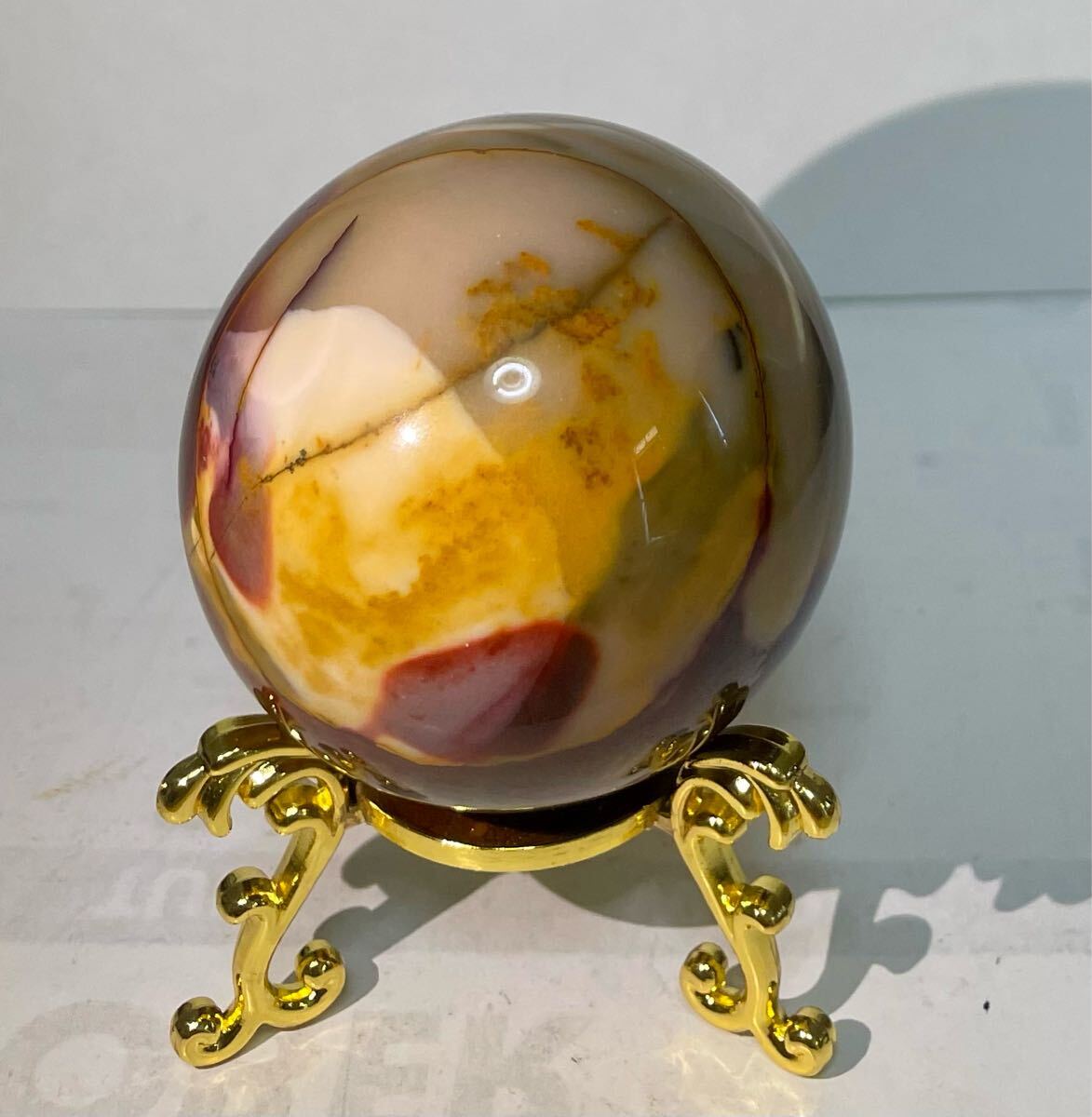 - ムーアカイト 天然石スフィア 006 丸玉 イエロー レッド 幸運 ラッキー 財運UP 置物インテリア 魔除 お守 パワーストーン 風水晶 鉱物