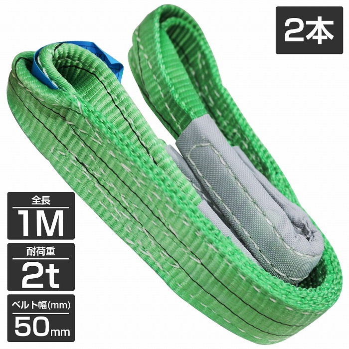 - [2本 セット/耐荷2t/長さ1m] スリング ベルト 吊上げ ナイロン クレーン ロープ 荷吊り 玉掛け 牽引 運搬 2000kg 2トン 幅50mm