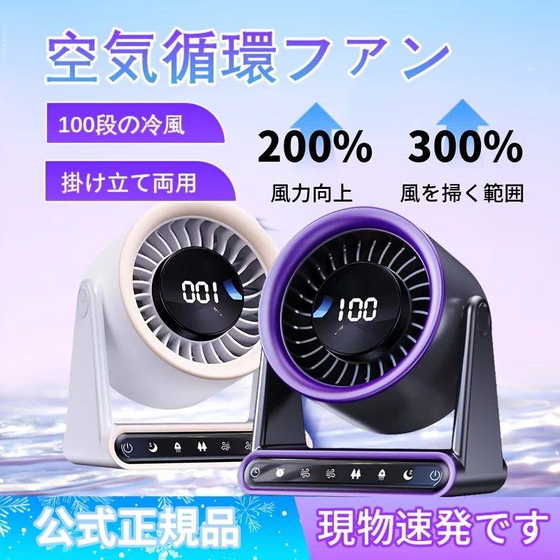 > 扇風機 USB充電式 ファン 卓上 静音設計 100段階風量調節 壁掛け 空気循環 dcモーター 120度角度調整 タイマー機能 パワフル送風 省エネ