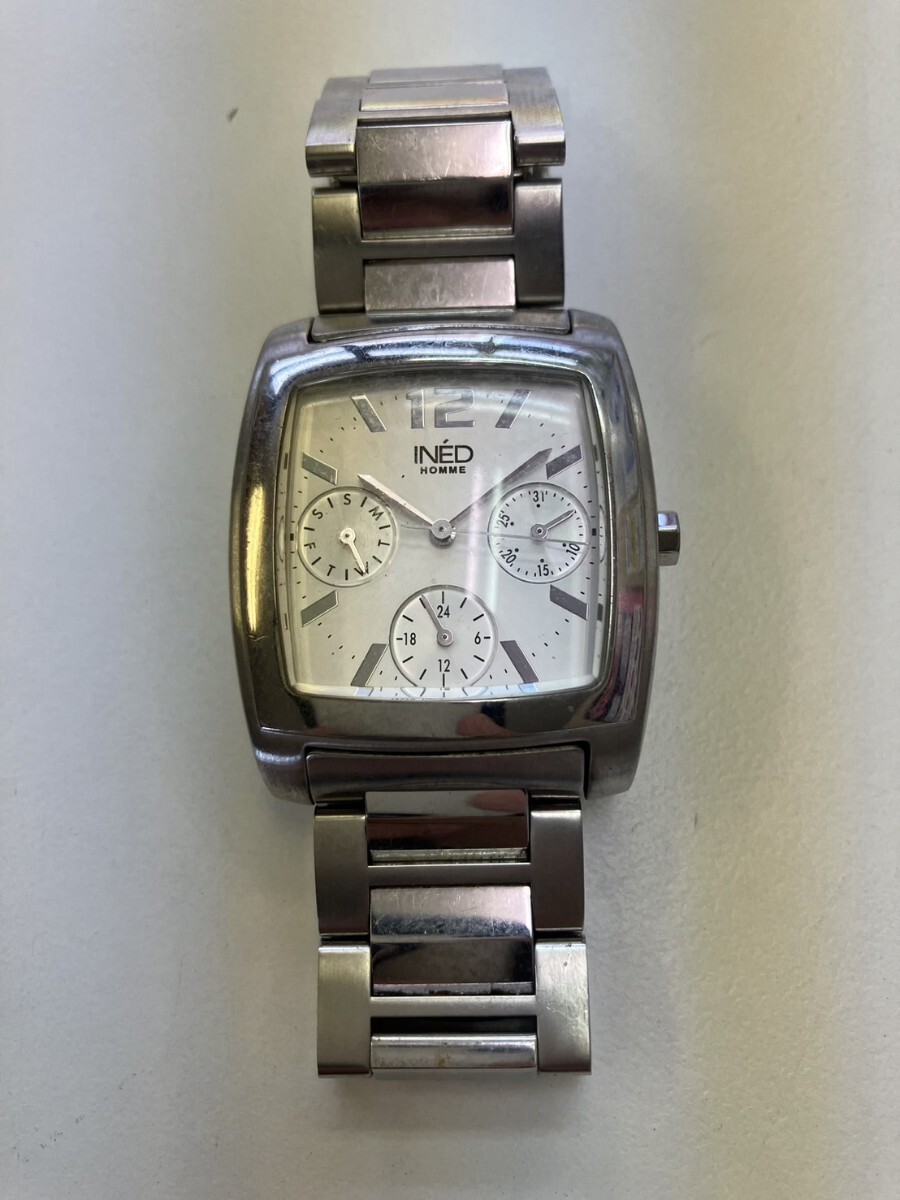 - 【中古品】INED HOMME イネド メンズ クォーツ 腕時計 白盤 ホワイト シルバー 動作未確認