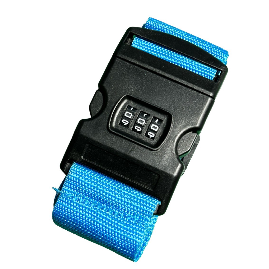 - RPJ 鍵付き スーツケースベルト (スカイブルー) I字 長さ 100cm ~ 185cm 幅 5cm キャリーケース ベルト ダイヤル式 ロック 長さ調節