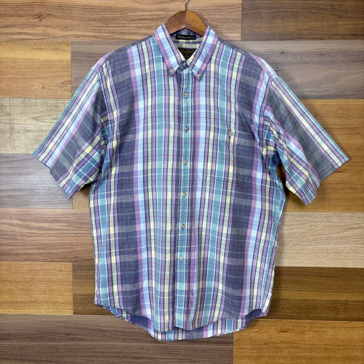 > 80s~90s Eddie Bauer エディーバウアー 黒タグ マドラスチェック柄 ボタンダウン 半袖 シャツ サイズ メンズ L 80年代 90年代 r25052727