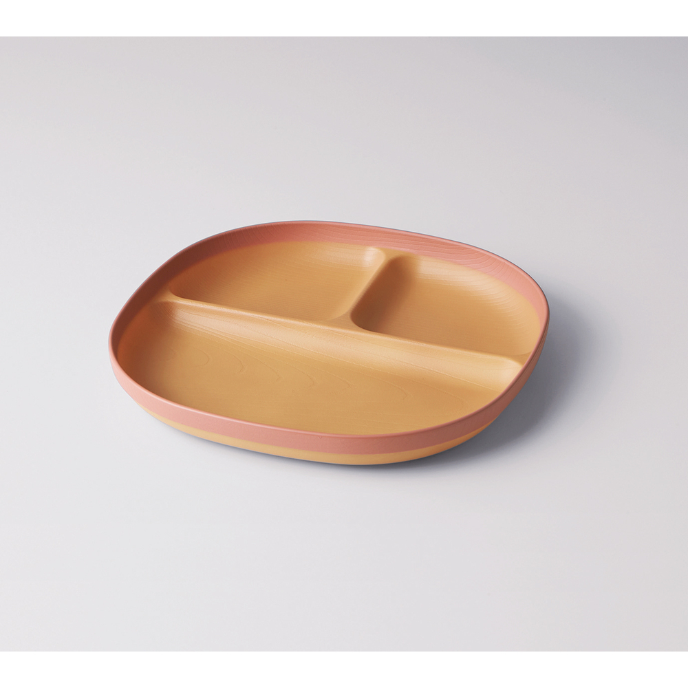 > ☆ ナチュラルブラウン/ピンク ☆ MUSUBI 塗分け ランチプレート ランチプレート 食洗機対応 仕切り皿 角皿 スクエア 電子レンジ対応