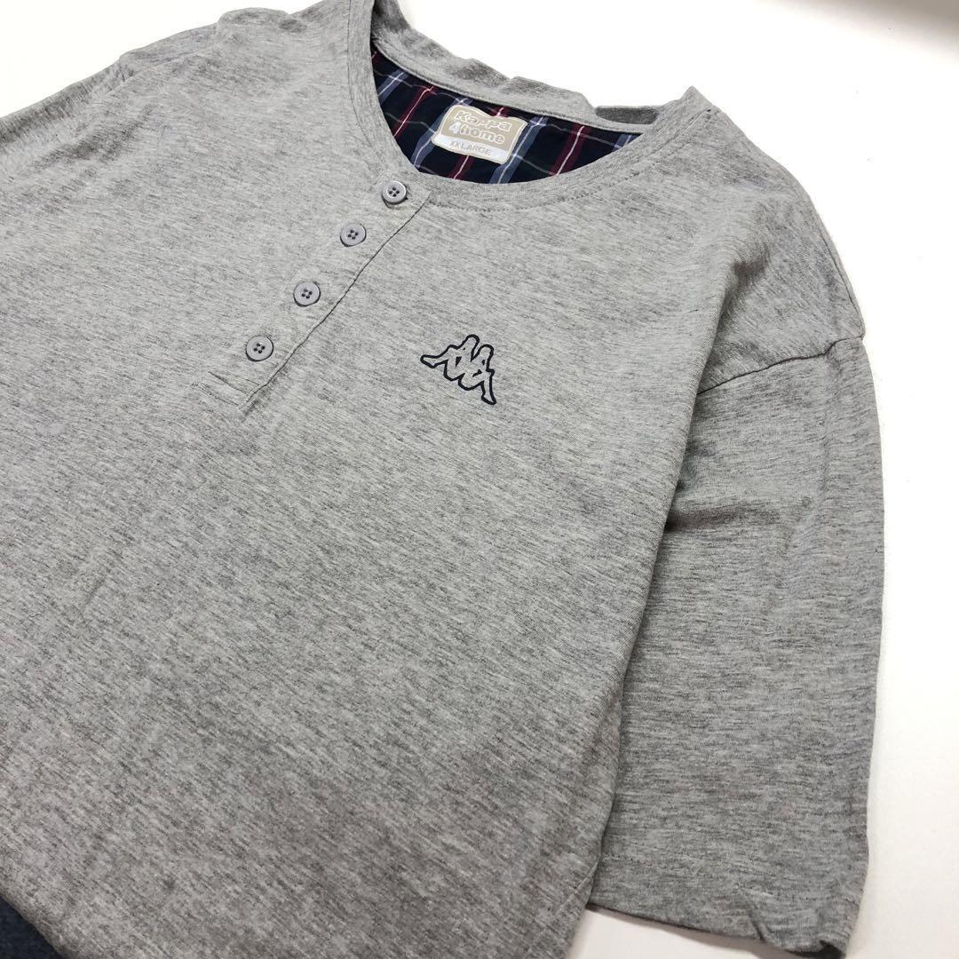 - Kappa 半袖Tシャツ ヘンリーネック グレー メンズ2XL
