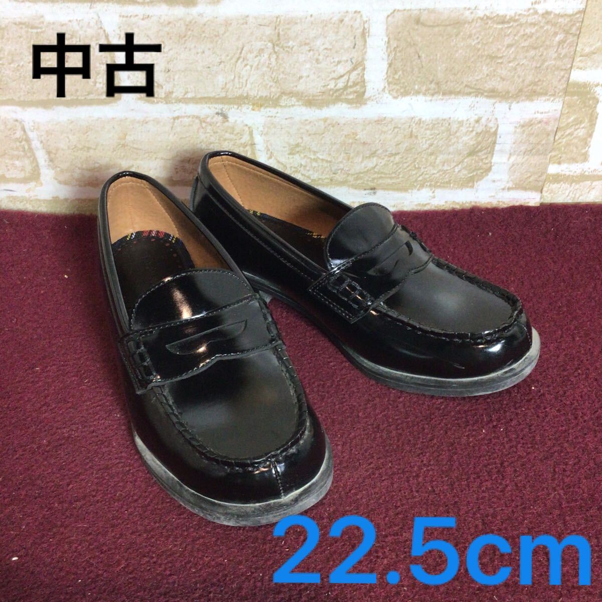 > 【売り切り!送料無料!】A-334 TOPVALU!ローファー!22.5cm!黒!!ブラック!学生!高校生!通学!冠婚葬祭!制服!中古!