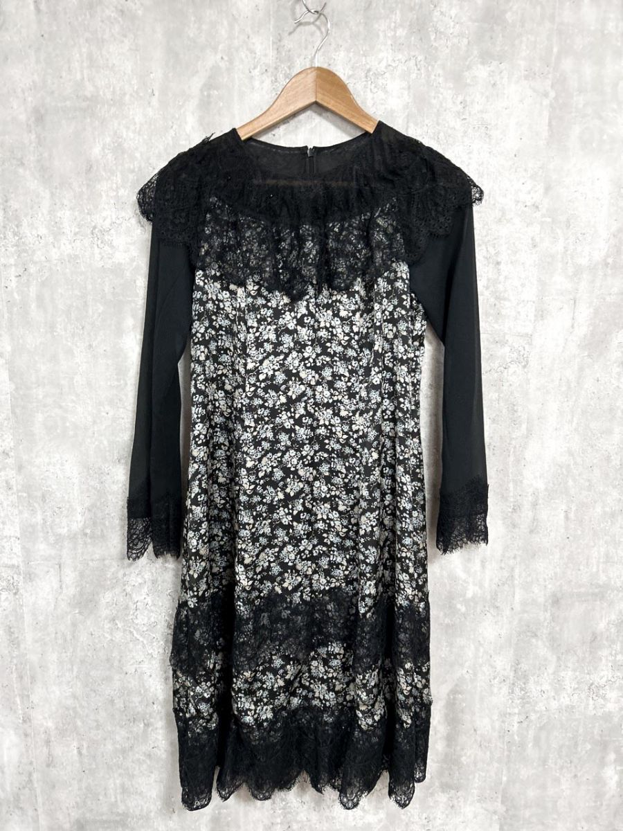 > ジン カトー ZIN KATO シアー 花柄 レース Iライン ワンピース sizeS/黒x水色 ■◆◎ レディース
