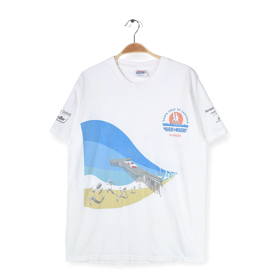 - 【送料無料】00s サンタクルーズマラソン大会 ハイチ製 ヴィンテージTシャツ スポンサー シーゲイト ニューバランス ホワイト M @BE9016
