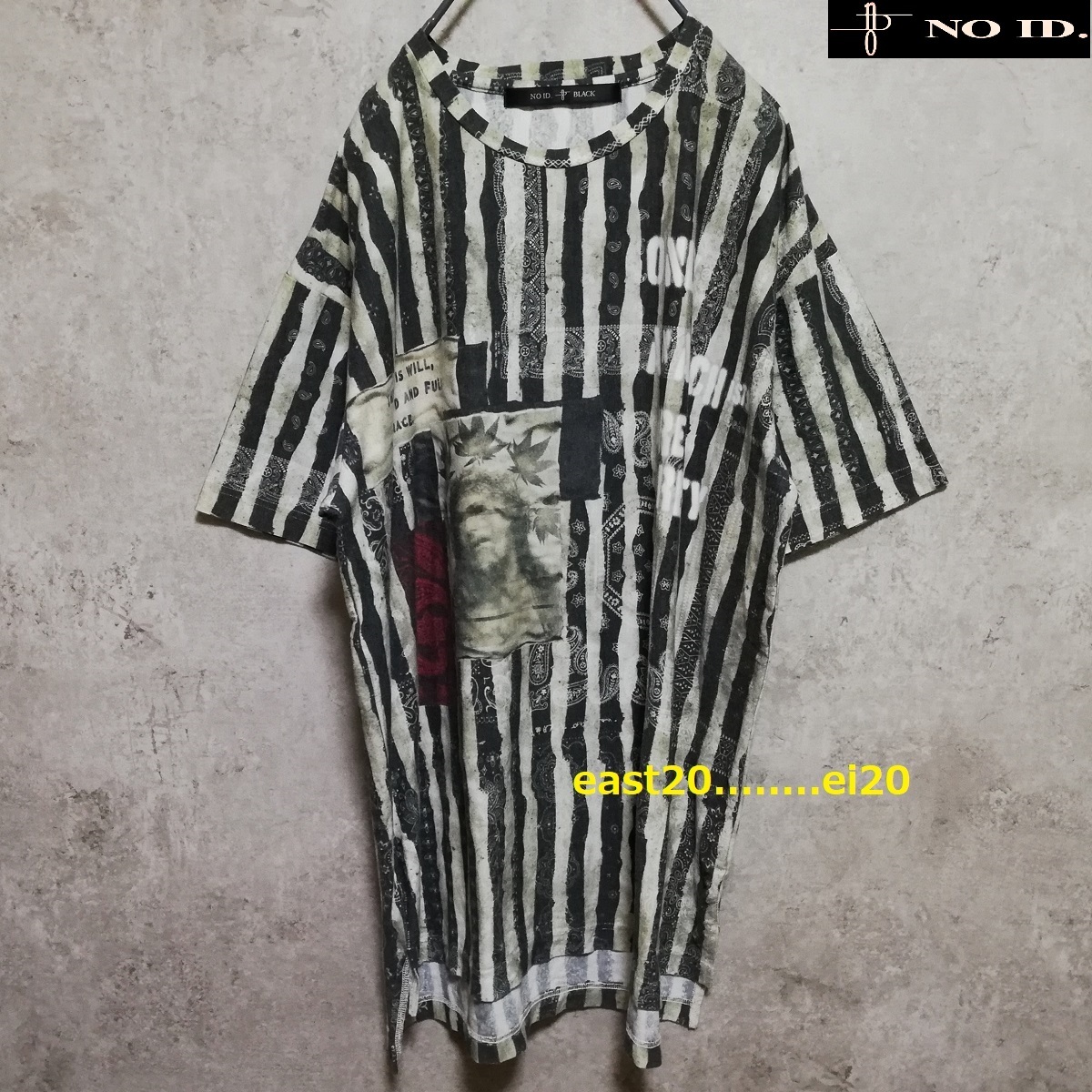 > NO ID. BLACK ノーアイディー ロンドン パンク 彷彿 アナーキー ペイント ストライプ メンズ Tシャツ ペイズリー ストリート 即決 送料無料