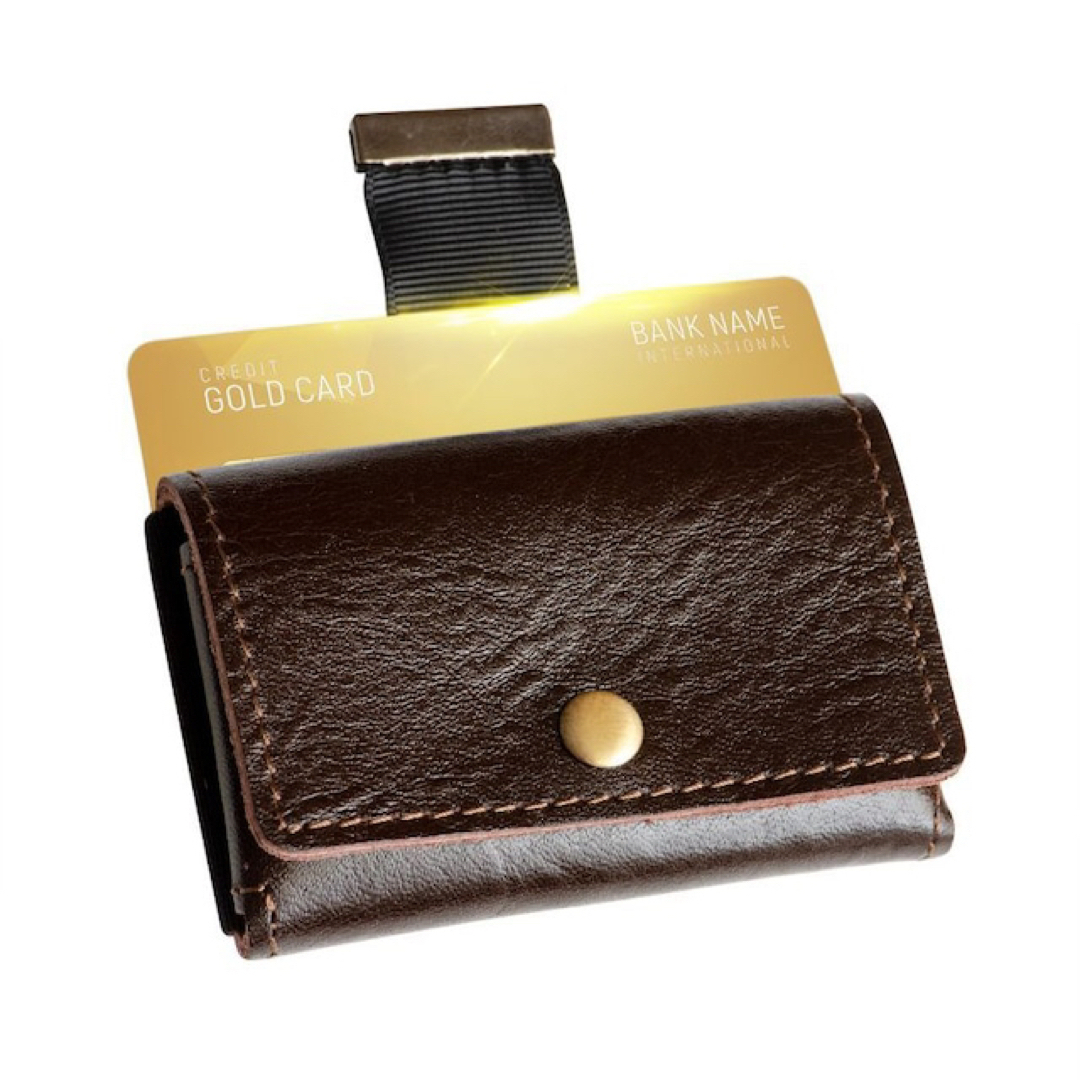 - 新品本革 ミニ財布 メンズ 小銭入れ プルタブ カードケース 牛革 京極匠工房 ダークブラウン