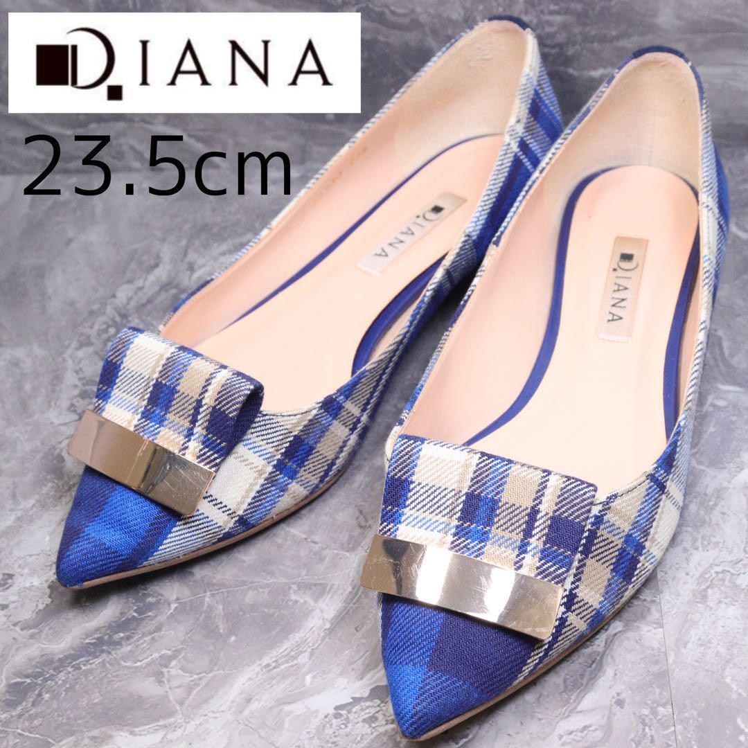 > 美品 ダイアナ DIANA プレート ポインテッドトゥ チェック 23.5