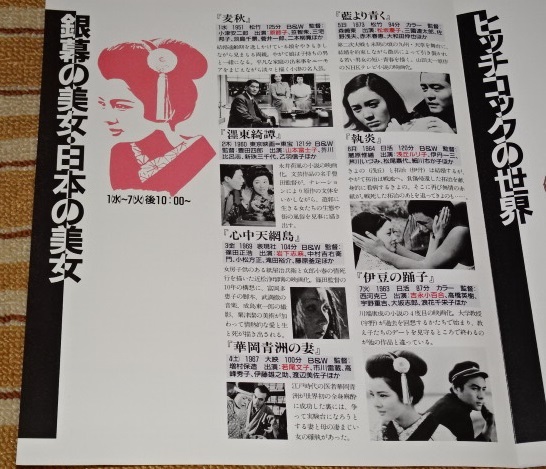 > ■【1989年NHK衛星映画劇場 特集(No.2)】小津安二郎,吉永小百合,ヒッチコック,石原裕次郎,赤木圭一郎,夏の嵐,ひまわり他(四つ折り畳み)