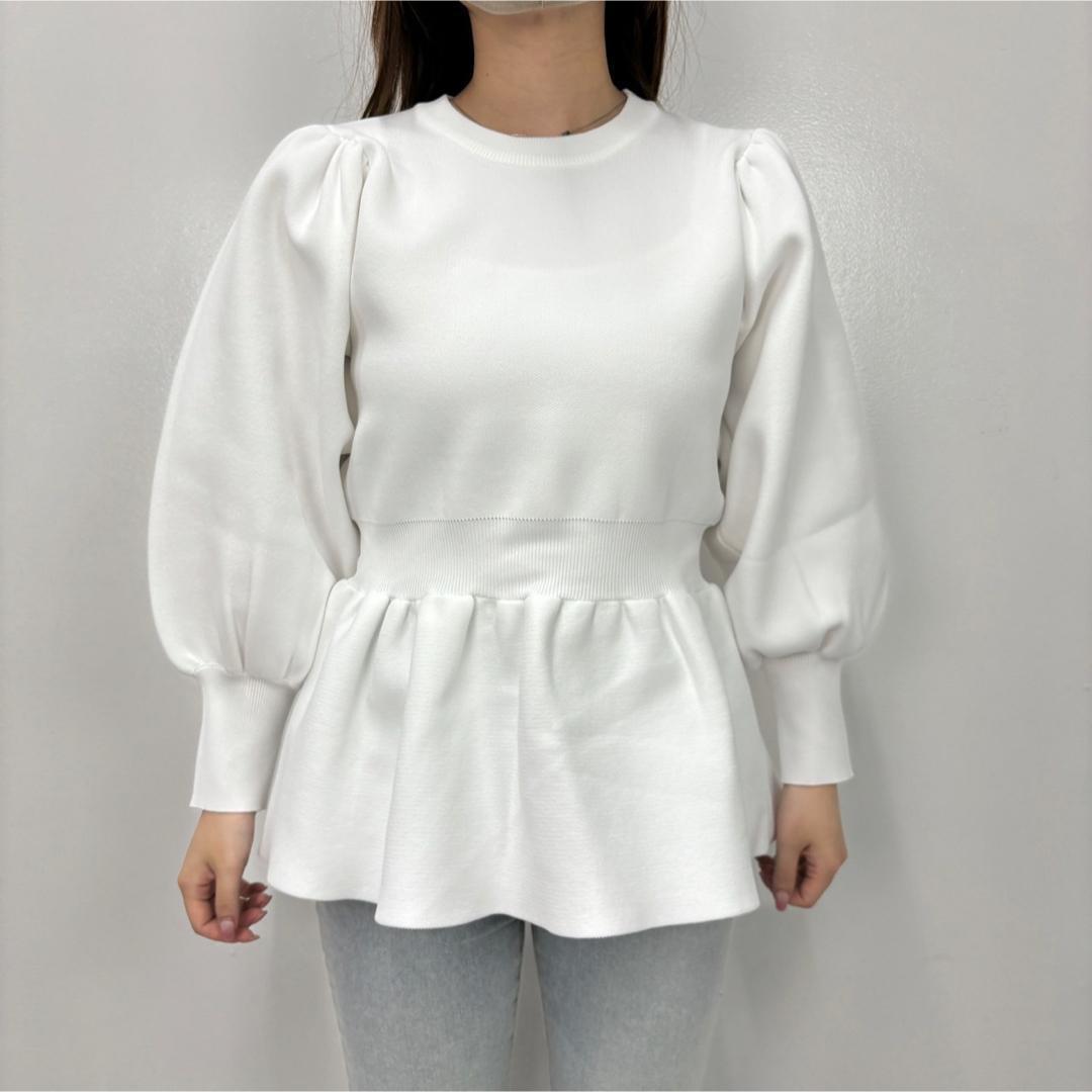 - 【新品】TREFLE+1 トレフルプラスワン ペプラムニット 長袖 ホワイト 白