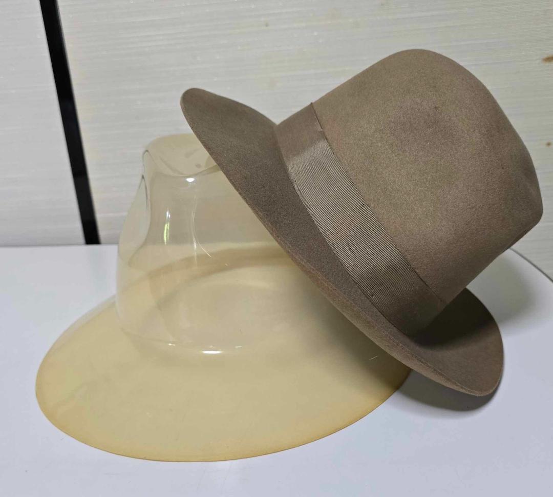 - 昭和レトロ 山高帽子中折れハット ウールベージュ 型崩れプラ型付き