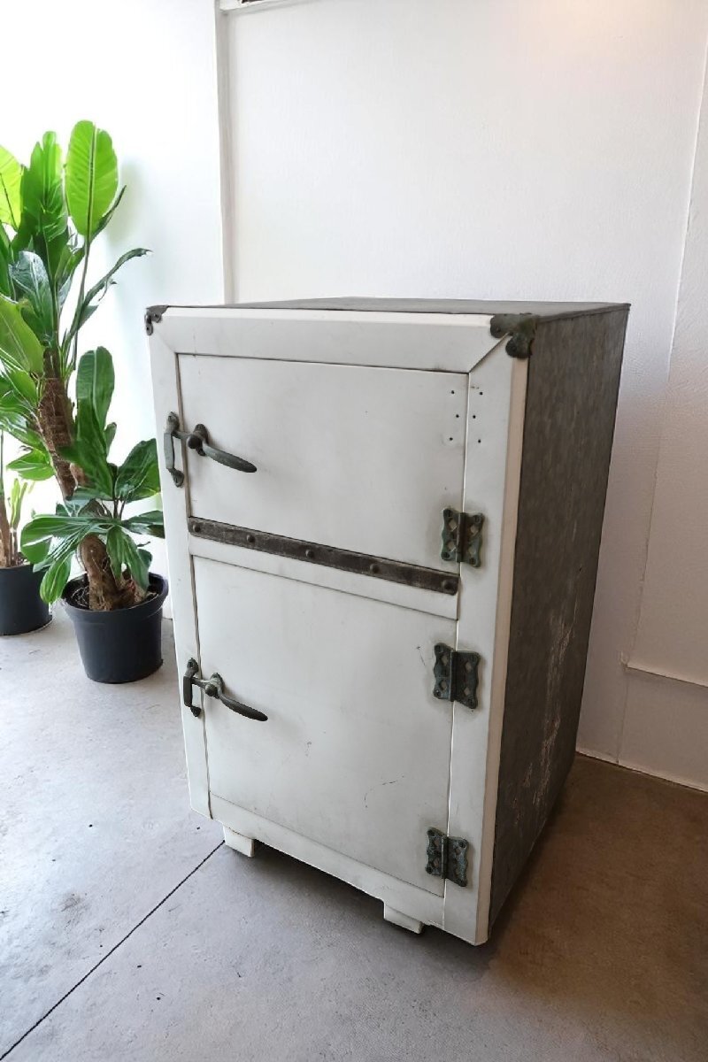 > ○昔ながらの冷蔵庫 氷 保冷庫 パントリー シャビーな白ペイント 2ドア 棚 ガレージ レトロ 古民家 古道具のgplus広島 2506i
