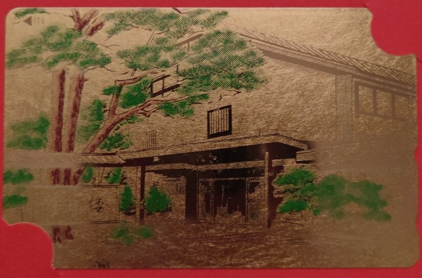 - 【未使用】純金箔テレホンカード 金城楼 台紙付き 金沢純金箔 50度数 テレカ