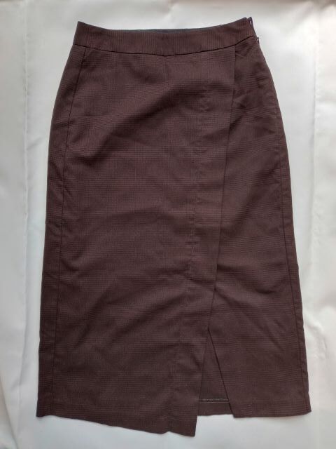 - 茶チェック ロングスカート タイトスカート スリット Mサイズくらい