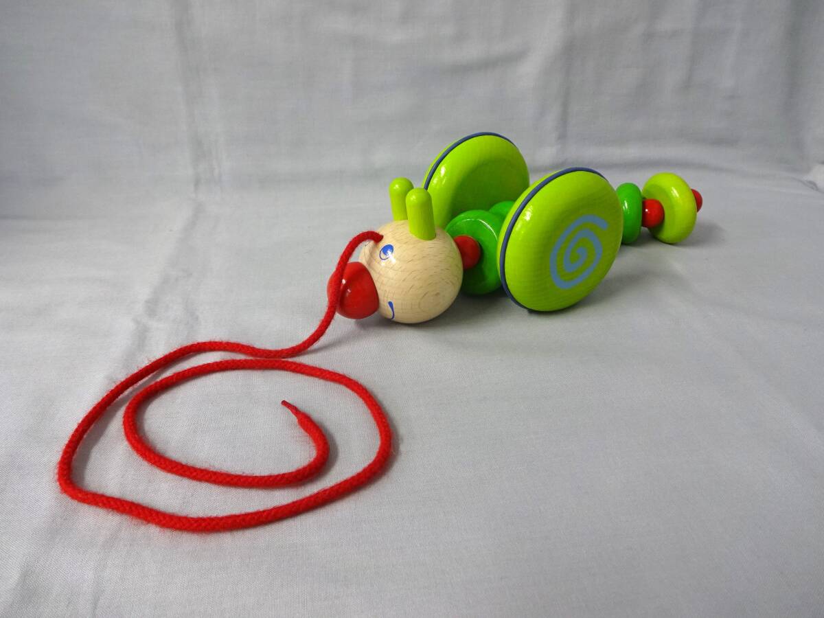 > HABA社 ハバ プルトーイ 芋虫 いもむし 紐付き 木製 知育玩具 おもちゃ プルトイ 緑 全長:約25cm ドイツ Ziehfigur Raupe Rina