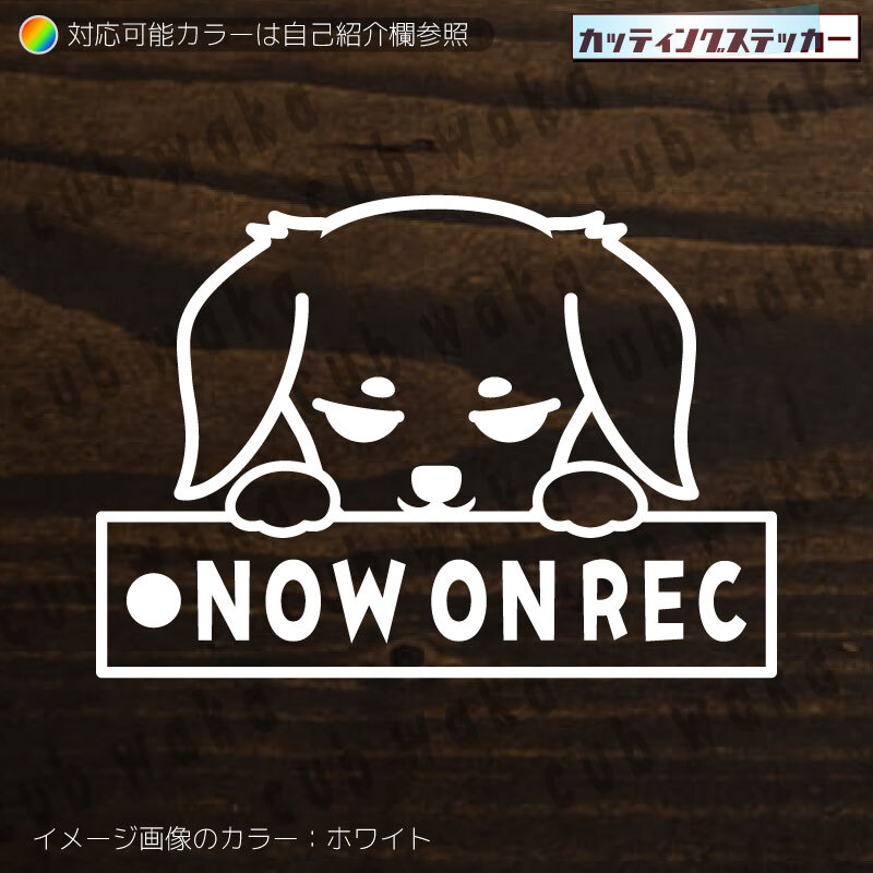 - ドラレコ録画中⑦ダックス1ステッカー 文字絵柄だけ残るカッティングステッカー・リアガラス・ドライブレコーダー・あおり対策・犬・イヌ