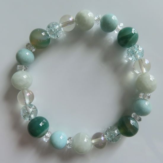 - 送料無料、ラリマー、ヒスイ、サードニクス、ゴールドオーラ、水晶のブレスレット