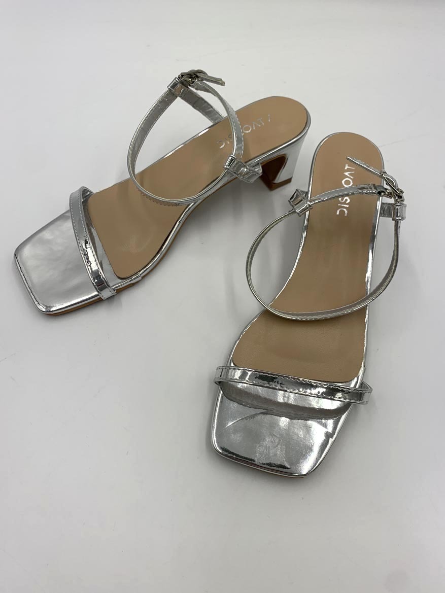 - Discoat ディスコート ラインプレートヒールサンダル パンプス sizeM/シルバー ■■ ☆ fcb3 レディース