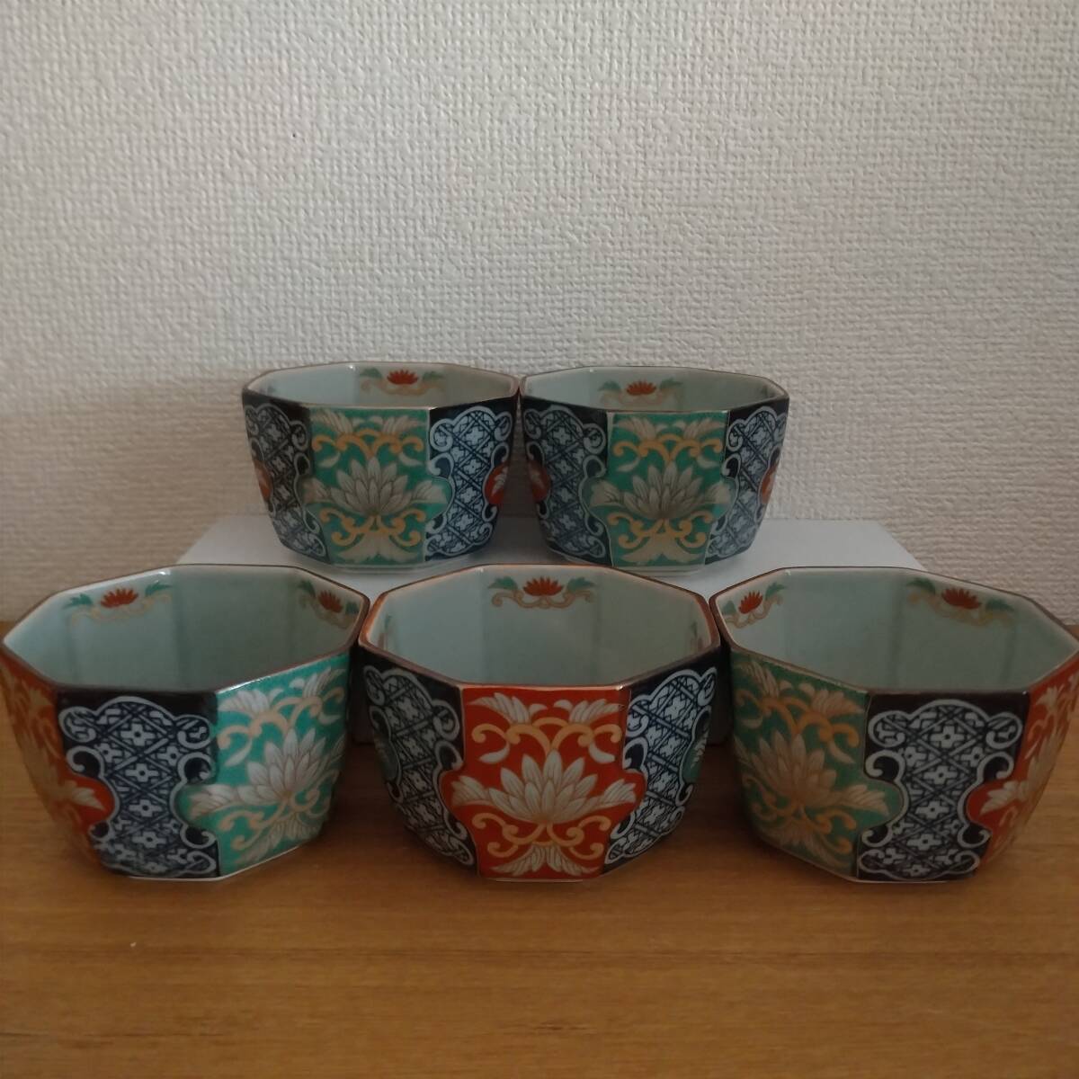 - 有田焼 波佐見焼 紀窯 金彩 八角小鉢 8角 5個 セット マルチカラー 箱なし