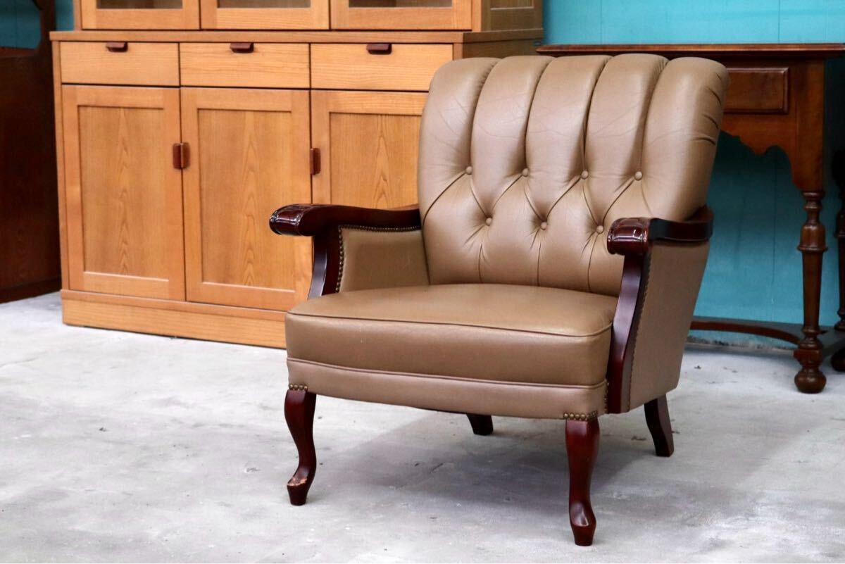 - GMIH111A○奈技工房 ALDO アルド 1人掛けソファ シングルソファ アームソファ 本革 レザー 鋲打ち 猫脚 クラシック ロココ調 定価約43万