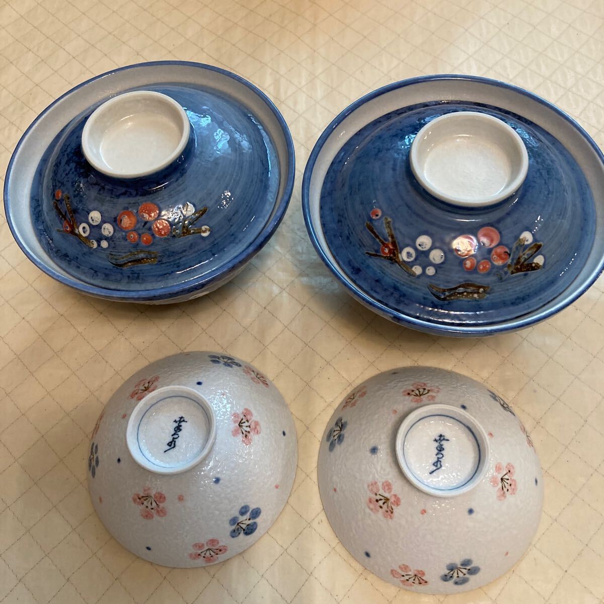 - 梅柄 小さ目 ご飯茶碗 2個 蓋付 どんぶり 2個 うち1個 難あり 和食器 丼 蓋茶碗 茶碗 飯茶碗 親子丼 カツ丼