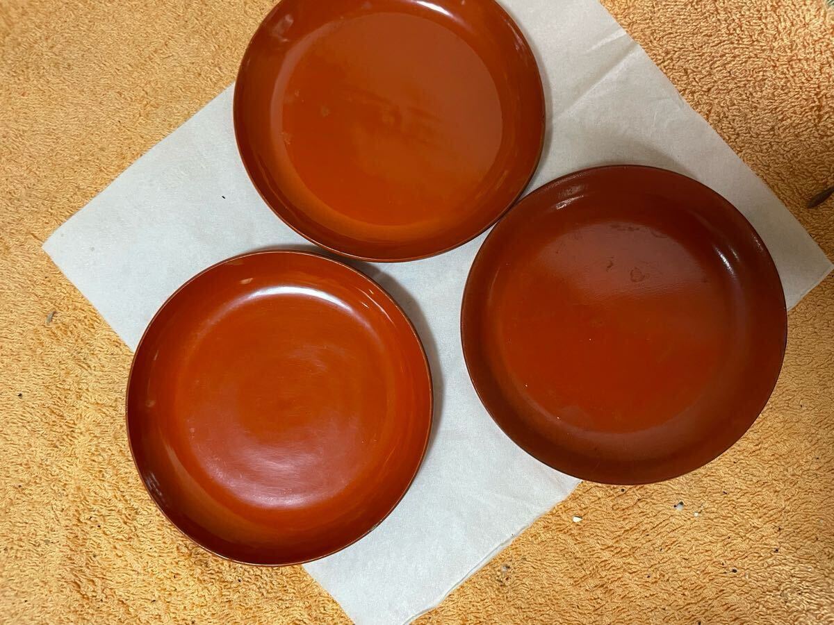 > アンティーク?骨董品? 木製 ?漆器?小皿?3枚セット?和食器?食器?汚れあり、342です。