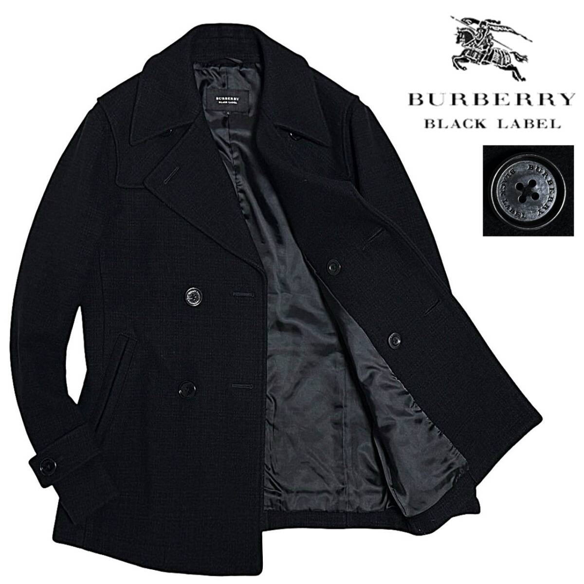 > 極美品 限定品! バーバリーブラックレーベル シャドーチェック 羊毛 メルトン Pコート L/3 黒 ピーコート ジャケット BURBERRY BLACK LABEL
